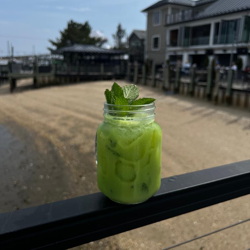 Malibu, Yoshi Matcha Liqueur, limes, mint, coconut water