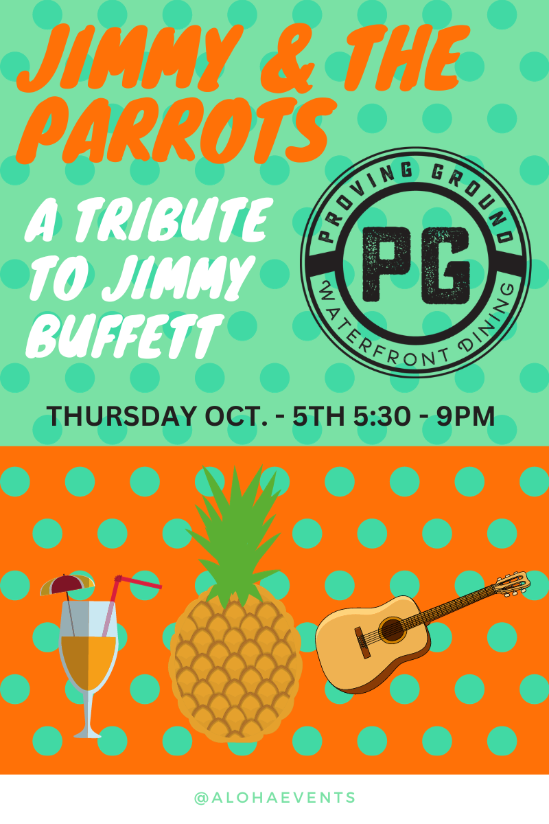 Jimmy & the Parrots - Jimmy Buffet Tribute Band Thursday, October 5, 2023 5:30 PM 9:00 PM 17:30 21:00 The Proving Ground 56 Shrewsbury Avenue Highlands, NJ, 07732 United States (map) Google Calendar ICS