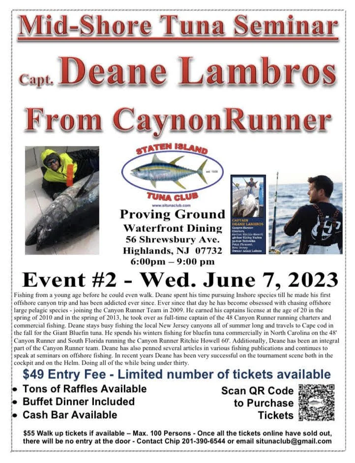 Staten Island Tuna Club Seminar Wednesday, June 7, 2023 6:00 PM 9:00 PM 18:00 21:00 The Proving Ground 56 Shrewsbury Avenue Highlands, NJ, 07732 United States (map) Google Calendar ICS