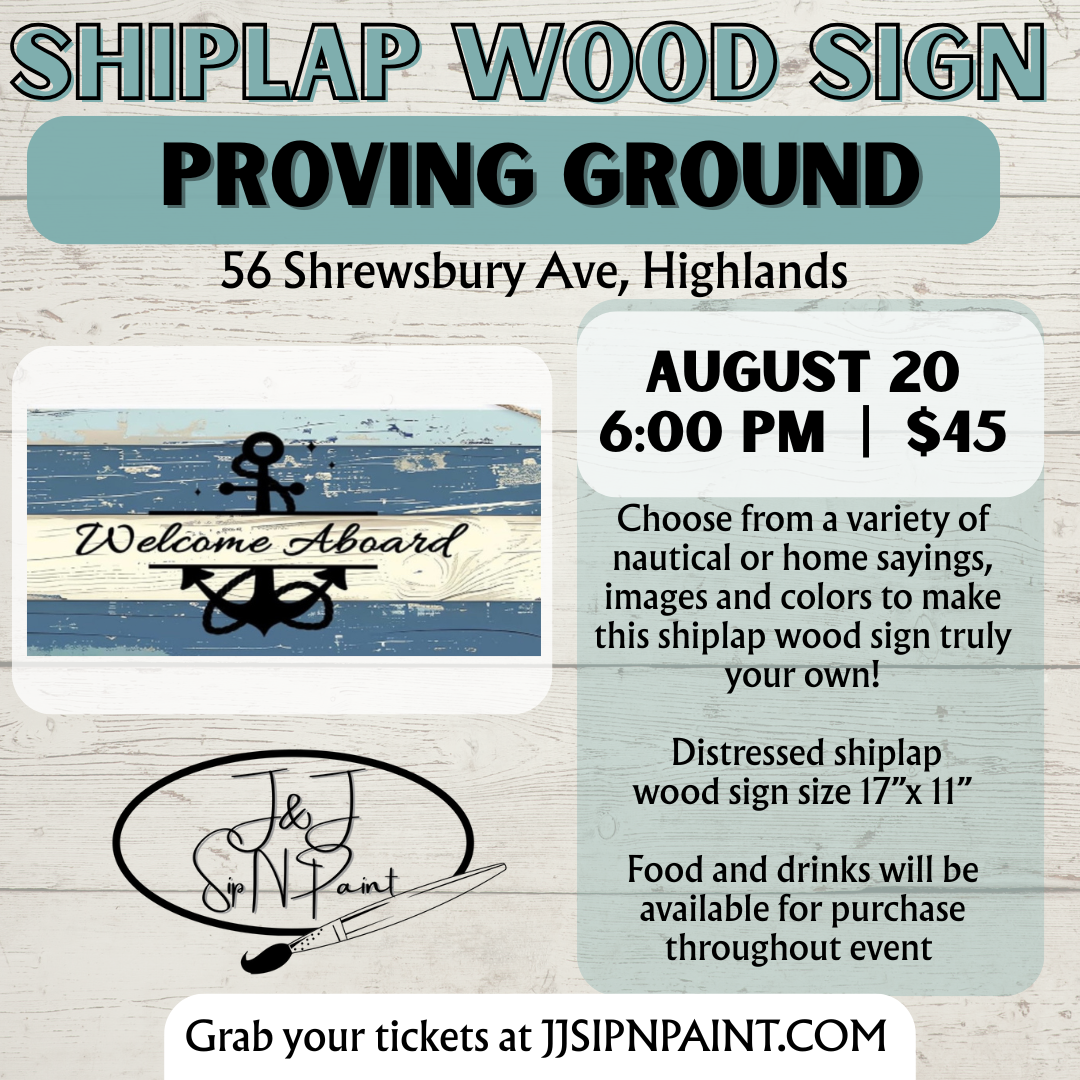 Shiplap Workshop Wednesday, August 20, 2025 6:00 PM 8:00 PM 18:00 20:00 The Proving Ground 56 Shrewsbury Avenue Highlands, NJ, 07732 United States (map) Google Calendar ICS